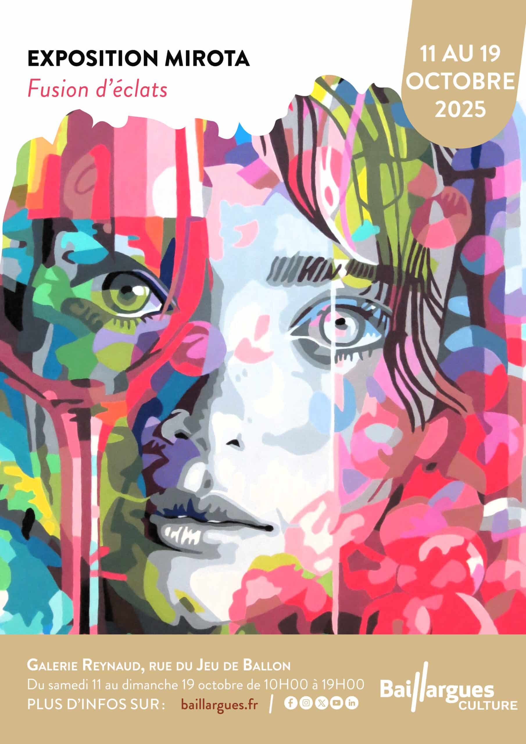 👉 Rendez-vous du 11 au 19 octobre, de 10h à 19h, à la Galerie Reynaud pour découvrir MIROTA et ses œuvres colorées. Une exposition qui promet énergie, convivialité et émotion artistique.