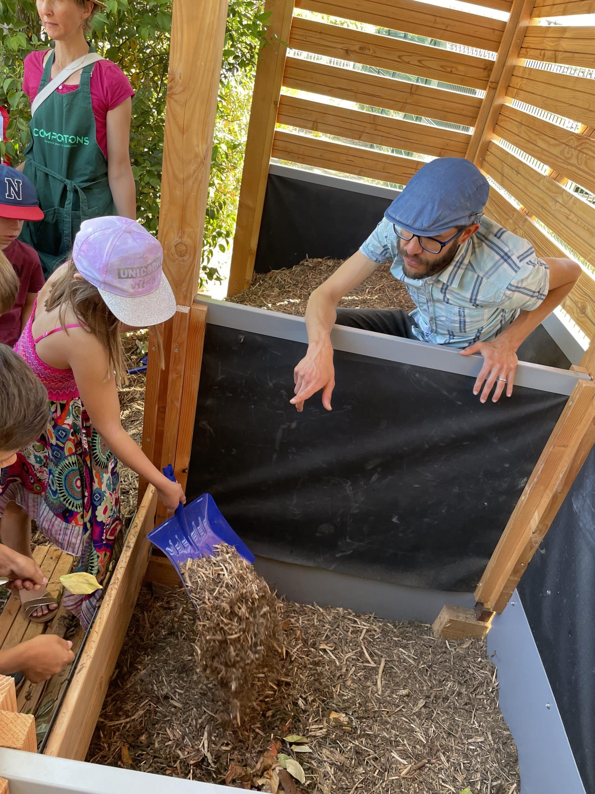 Dans ce but, une animation a été proposée par des professionnels de l’association Compostons afin d’expliquer le fonctionnement du composteur aux enfants.