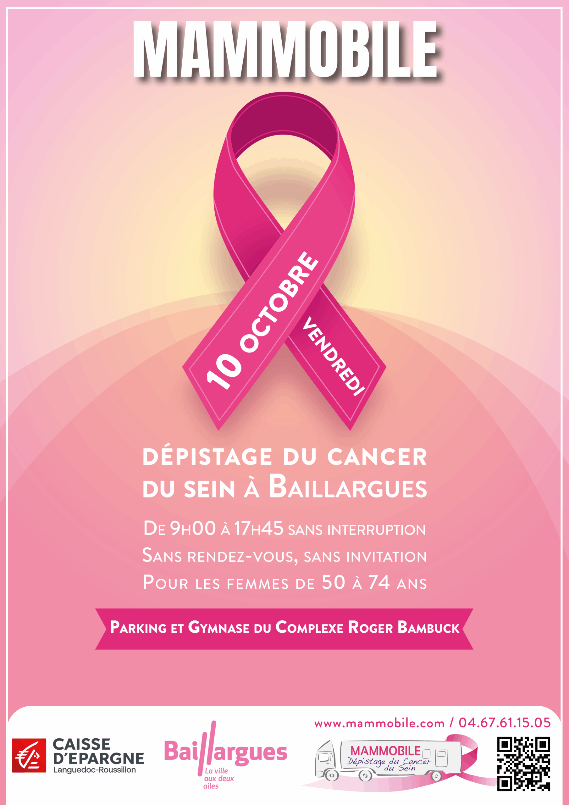 Le 10 octobre 2025, la Ville de Baillargues se mobilise pour Octobre Rose, la campagne nationale de sensibilisation et de prévention du cancer du sein. À cette occasion, le Mammobile sera présent toute la journée pour proposer un dépistage gratuit.