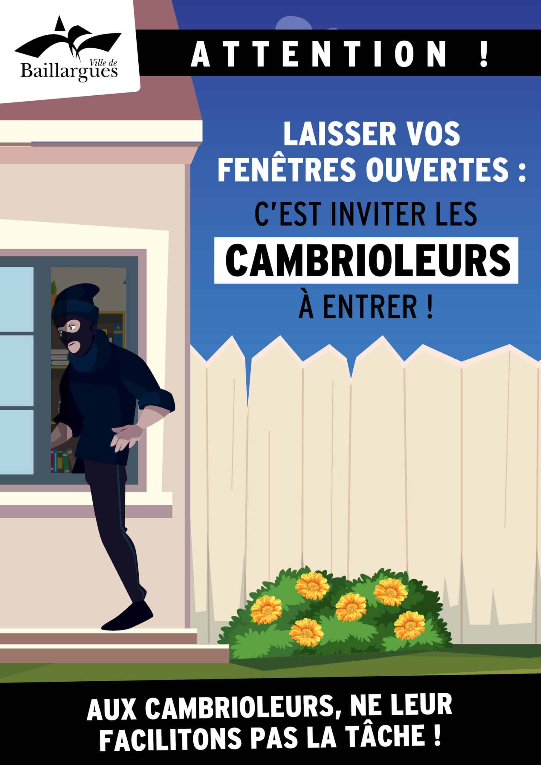 Les situations qui facilitent les cambriolages sont multiples. Face à cette problématique, la Ville de Baillargues lance une campagne de sensibilisation aux gestes barrières à appliqués pour se prémunir des cambriolages.